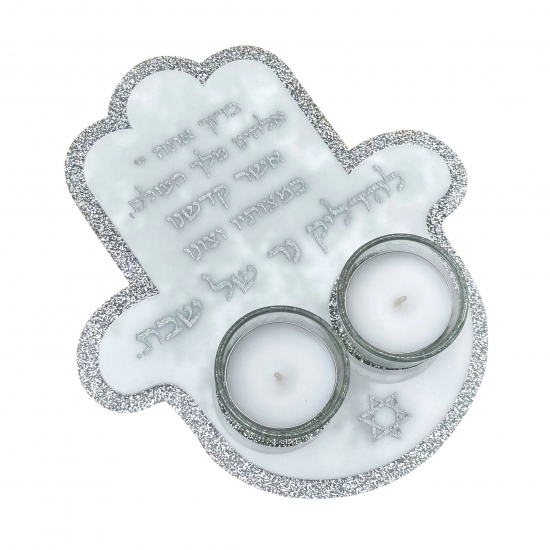 モダンなハムサルーサイト製シャバットキャンドルホルダー - カスタマイズ可能なユダヤ教の大量注文(サンプルとテスト注文可能)