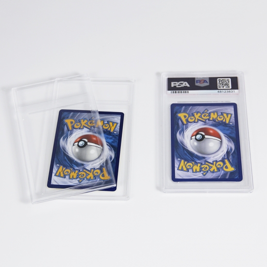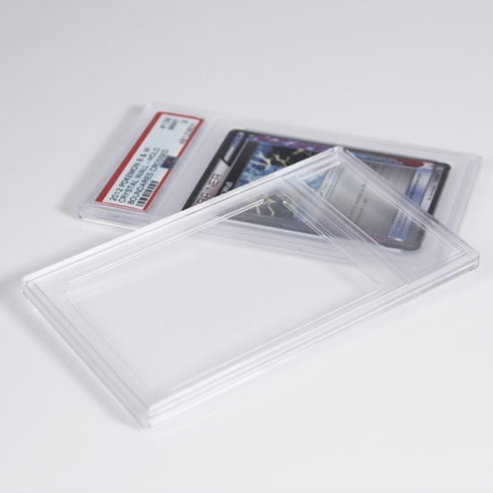このアクリルケースの主な機能は、グレーディングされたTCGカードスラブを保護することです。環境によるダメージ(埃、傷、軽微な衝撃)から保護し、スラブの状態と収集価値を維持します。また、ディスプレイアクセサリーとしても機能し、スラブを視認性と無傷の状態に保ちながら、棚、ディスプレイスタンド、または収納ボックスにグレーディングされたカードを展示する際に、保護性能を損なうことなく保護することができます。さらに、貴重なスラブの取り扱いを簡素化し、グレーディングされたホルダー自体への直接的な接触を軽減します。