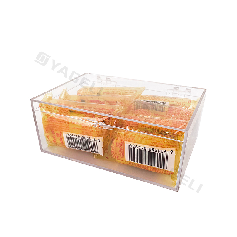 長方形の形状により、あらゆる家庭や小売店の環境にマッチするモダンでミニマリストな外観を維持しながら、収納スペースを最大限に活用できます。 このスナック収納ボックスは、完全に透明なアクリル構造を採用しており、蓋を開けなくても中身が簡単に見えるだけでなく、丈夫な素材で傷や衝撃にも強く、長期間の使用にも耐えます。