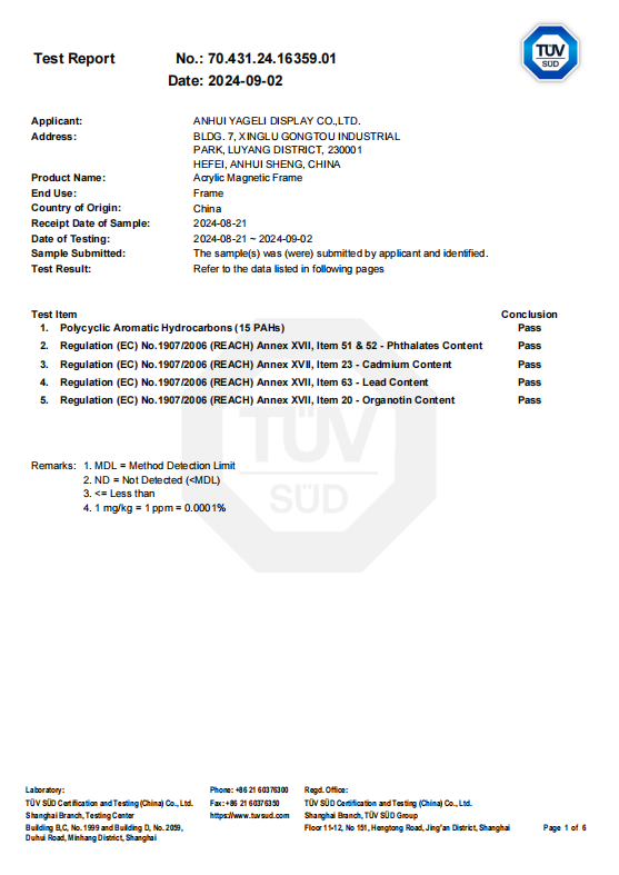 世界的な TCGアクセサリー市場 事業拡大に伴い、ブランド、販売代理店、そして機関投資家にとって、製品の安全性と材料コンプライアンスの重要性はますます高まっています。当社のアクリル製品が、 REACH認証 安全な材料と責任ある製造への長期的な取り組みを強化します。